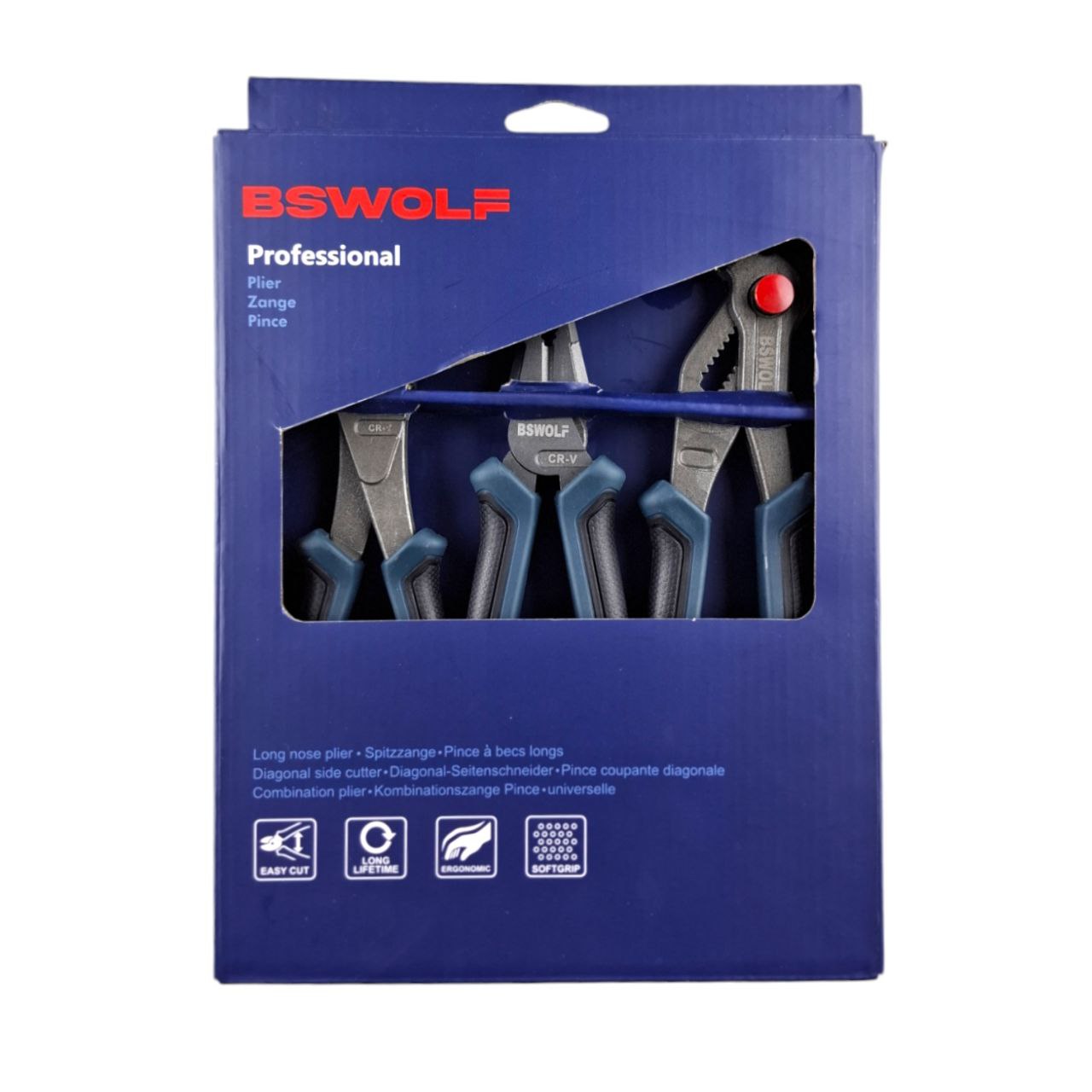 Набор шарнирно-губцевых инструментов CRV, бокорезы 180 мм, плоскогубцы 200, клещи 250, "Professional