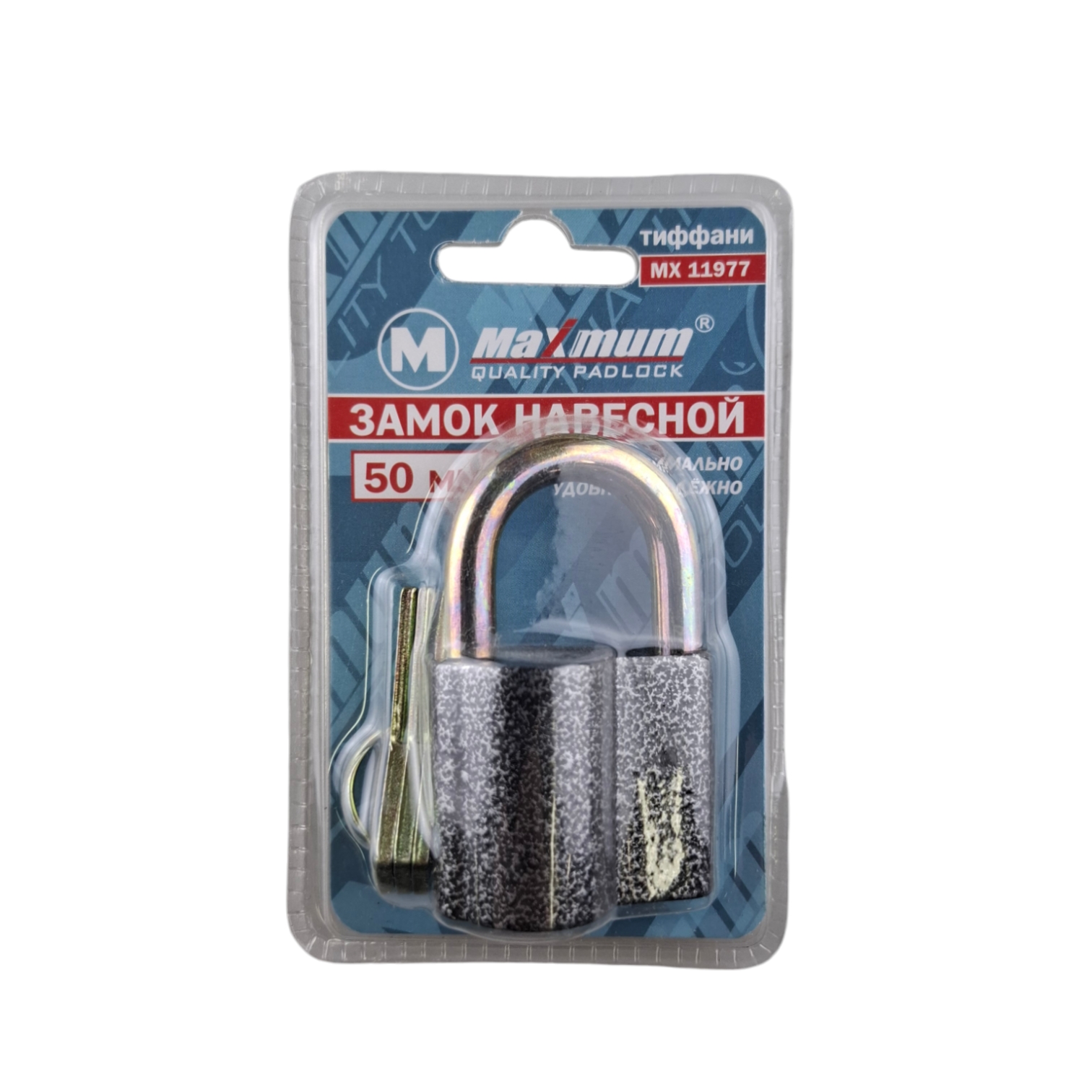 Замок навесной 50 мм, "MAXIMUM" М-0750 имеет простую и надежную конструкцию. Корпус выполнен из чугуна с антикоррозийным покрытием.